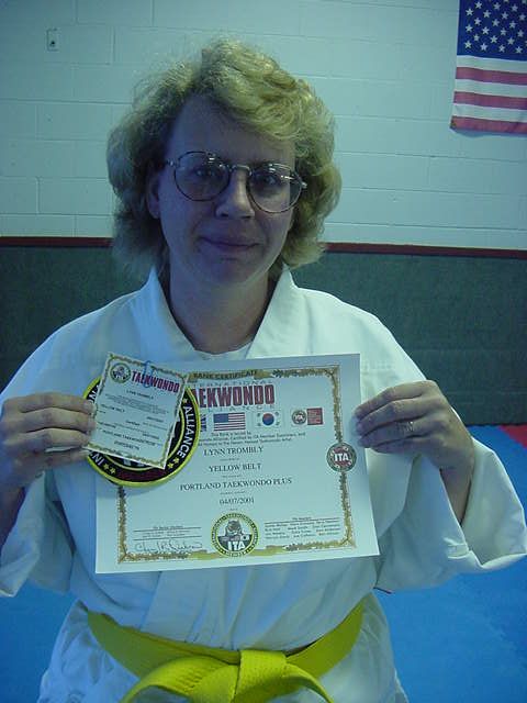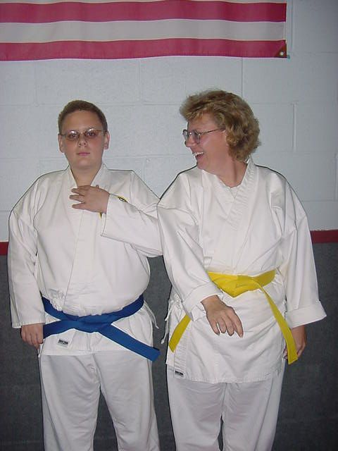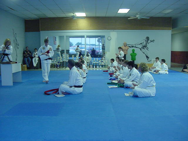 Andy and Lynn getting their new belts April 14, 2001