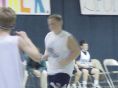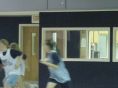 Andy grappling for the loose ball