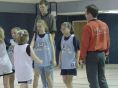 Flo looks on as Addie dribbles!
