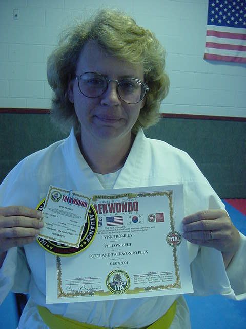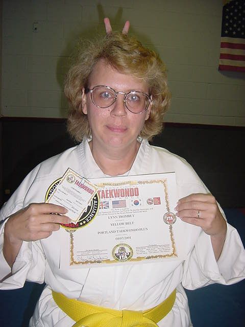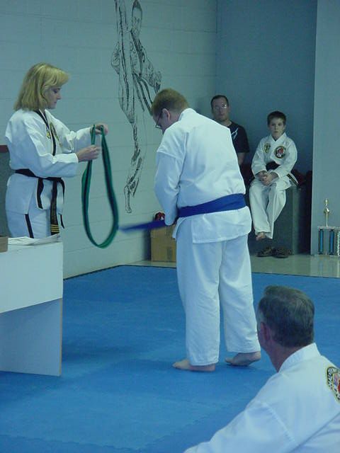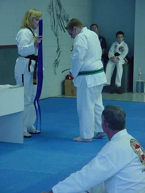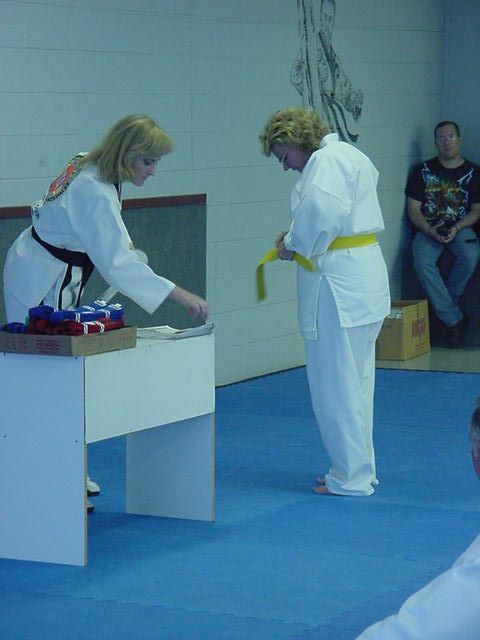Andy and Lynn getting their new belts April 14, 2001